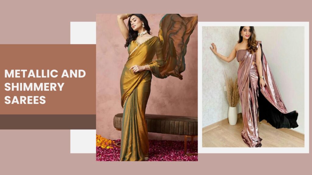 - Perfect for evening parties and receptions, metallic shades like gold, silver, and rose gold are trending.