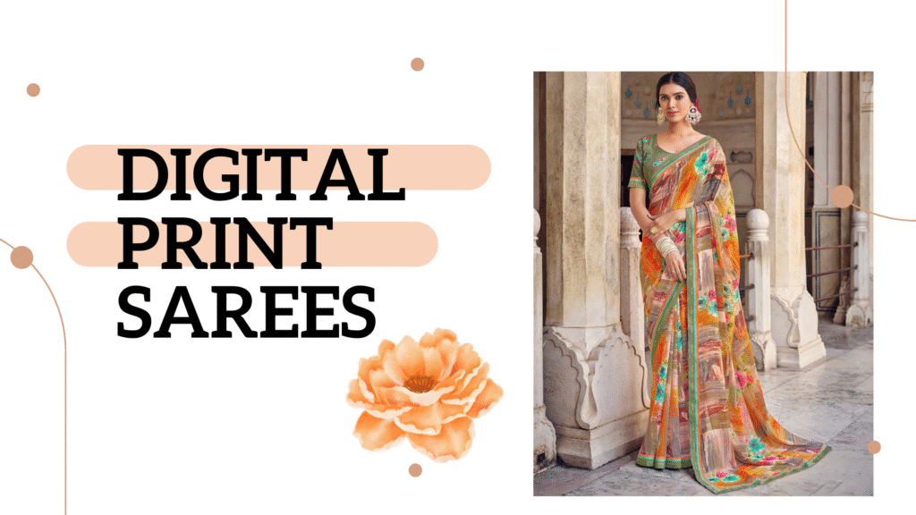 - Why trending? Digital prints allow bold patterns, vibrant colors, and creative artwork on sarees.