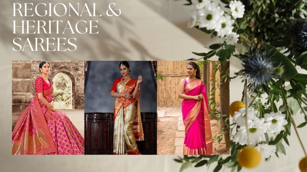 Keep a balance between heritage sarees (Banarasi, Kanjivaram) and modern fusion styles (pre-stitched, digital prints).